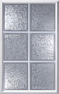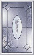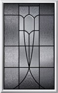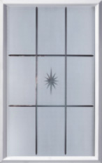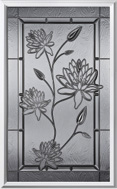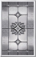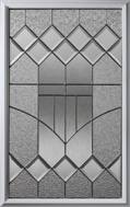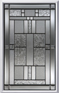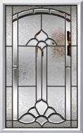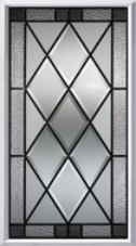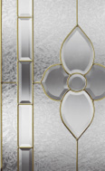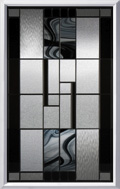 Granite glass, clear beveled glass, glue chip glass and glass caming.