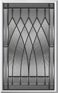 Sienna features a full panel of textured glass which provides a high level of obscurity and diffuses the appearance of the wrought iron from the inside of the home.